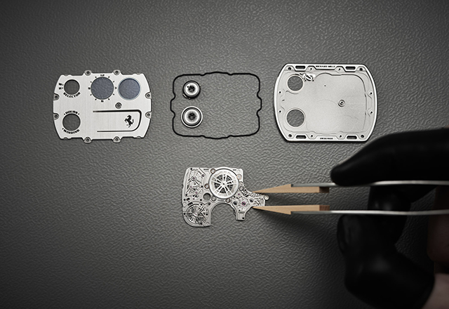 Ono što je posebno zadivljujuće kod modela RM UP-01 Ferrari je to što za razliku od mnogih drugih ultratankih satova on koristi tradicionalni sklop mehanizma i kućišta umesto da ima poklopac kućišta koji je u isto vreme i osnovna ploča.