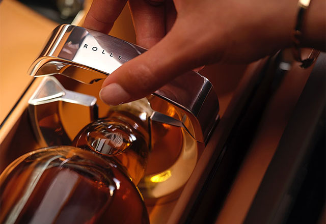 Kada otvorite Cellarette, meko svetlo odaje topao sjaj i otkriva fioku za držanje boce viskija obloženu Armagnac kožom, sa „RR“ inicijalima, kao i ručno duvane čaše za viski. Kompaktni, cilindrični humidor je takođe vrlo impresivan zbog svoje veličine i unutrašnjosti od španskog cedra. Takođe, sa obe strane nalaze se magnetski prikačeni upaljač i sekač za cigare kompanije S.T. Dupont iz Pariza.