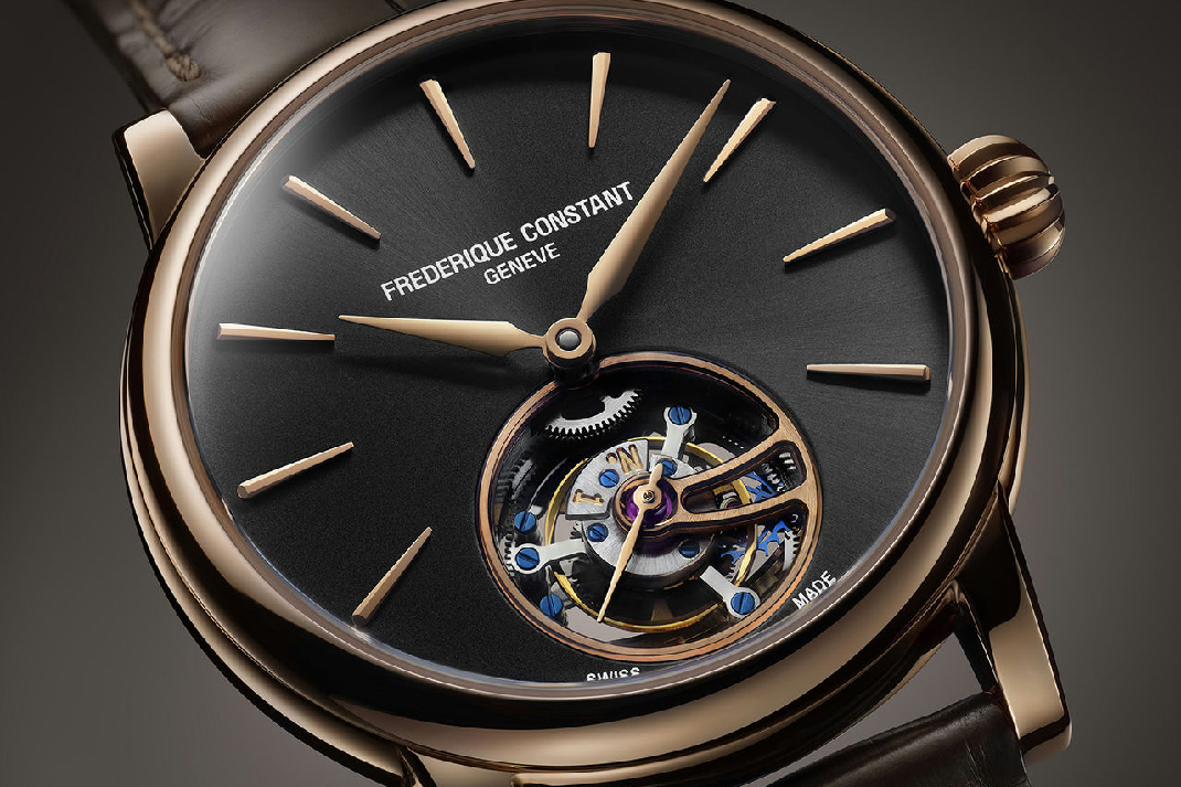 Kućište od 39 mm, od 18-karatnog belog zlata, polirano kao ogledalo, je dragoceni primer prelivajućeg sedefa. Ulepšano je svetloplavim kaišem od krokodilske kože sa preklopnom kopčom. Sofisticirani minimalizam, naglašen diskretnim potpisom „Frederique Constant – Genève – Swiss Made“, ističe suštinu brojčanika i složenost turbiliona.