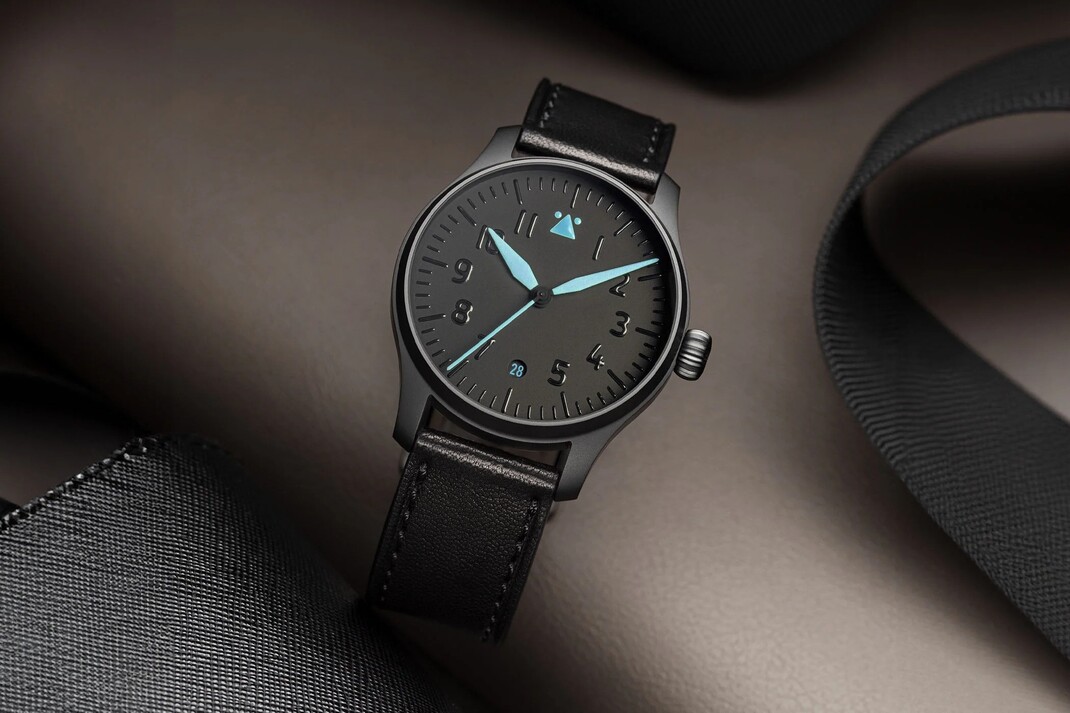 Stowa Flieger Verus Black Forest Lagoon: Stilizovano crni pilotski sat u tirkizno plavoj boji