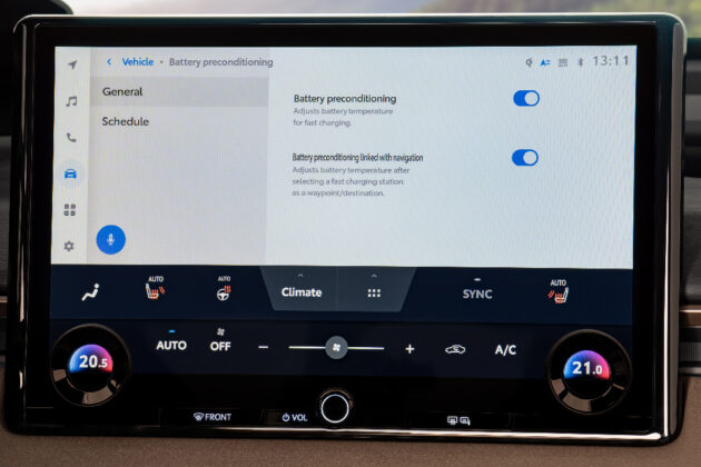 Oba pogonska sklopa su opremljena litijum-jonskom baterijom od 74,7 kWh (bruto kapaciteta) i, u zavisnosti od nivoa opreme, ugrađenim punjačem od 11 kW ili 22 kW. Maksimalni kapacitet brzog punjenja (na DC punjaču) je oko 150 kW.