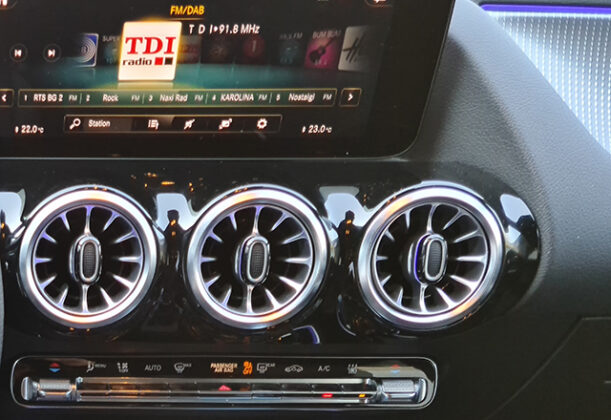 Što se tiče komandne table i kontrola, tu nema puno da se doda na ono što je već rečeno o raznim malim Mercedesima. Dizajn je prilično očaravajući, materijali su luksuzni a noćno osvetljenje je prelepo. Ekrani dominiraju, naročito jer u svim paketima opreme EQA dolazi sa dva velika ekrana. On nije potpuno zavistan od ekrana, doduše: možete da koristite kontroler na dodir između sedišta kao i glasovne komande. Ili možete dodirom da upravljate brzim interfejsom na samim ekranima, ili preko dugmića na volanu. Trebalo bi dakle za svakoga da postoji odgovarajući način upravljanja MBUX sistemom.