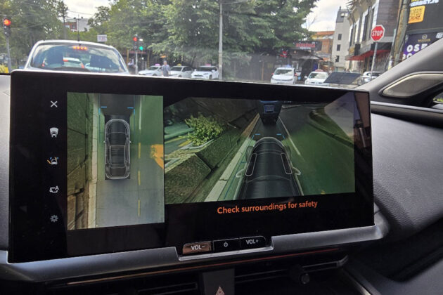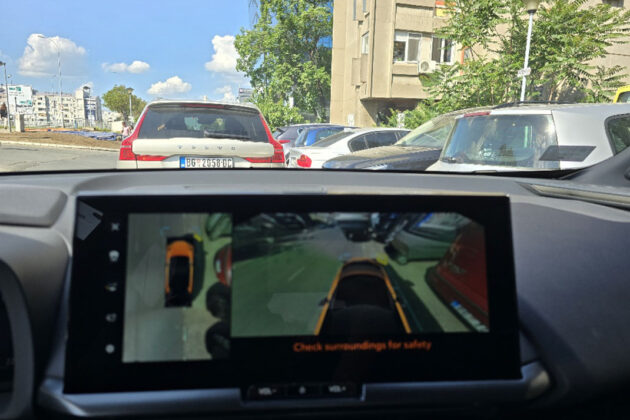 C-HR se oseća široko u kretanju, i oslanjaćete se na senzore i kamere za parkiranje jer je zadnja vidljivost veoma ograničena. Kamere su postavljene nisko, pa kada ih gledate više vidite asfalt nego automobile. To je naročito izraženo na 360 pogledu. Sva vozila okolo su izobličena. Može se pretpostaviti šta je ispred/bočno, ali nismo uvek bili 100 odsto sigurni.