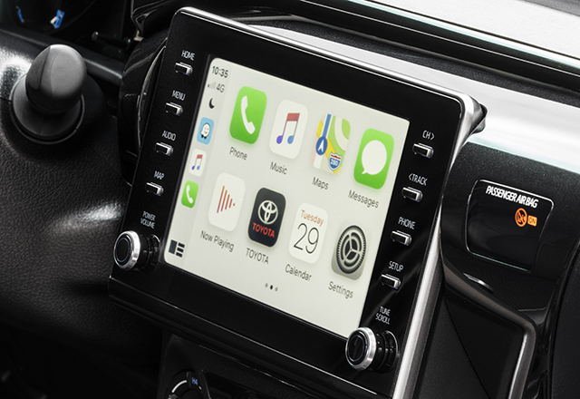 Ekran na dodir dijagonale 8 inča, koji se nalazi u svim paketima opreme osim u osnovnom Active paketu, koristi poznati Toyotin Touch 2 sistem, a dugmići sa prečicama nalaze se oko ekrana. Možete da izbegnete pomalo zastareli nativni interfejs zahvaljujući podršci za Apple i Android softvere, uz lokalno punjenje preko USB-a.