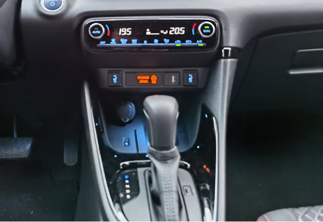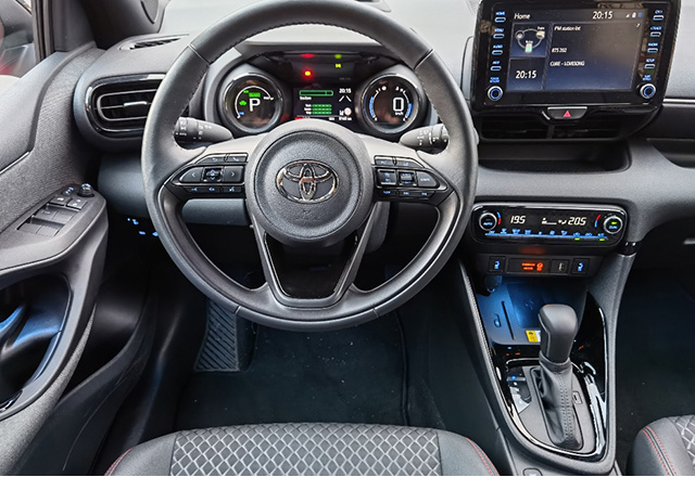 Iako autoput nije Yarisov prvi izbor, na njemu do izražaja dolazi adaptivni tempomat. Radi sve do zaustavljanja. Ako se ne čeka na pokret, auto sam polazi i vraća se do podešene brzine (pod uslovom da je put slobodan i da pred vama u traci nema sporijih vozila). Head-up displej prikazuje sve što je za vožnju relevantno, a vama ostavlja pogled na put. Milina je ubrzavati i usporavati preko tempomata. Na tasterima na volanu u par klikova zadate brzinu, a Yaris sam ubrzava ili koči. Moramo primetiti da je često ubrzanje preko tempomata brže nego kada pritisnemo pedalu gasa. Stoga je na autoputu praktičnije odmarati noge i preko tastera birati brzinu.