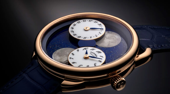 Možete se uvek osloniti na Hermès da priredi iznenađenje i oduševljenje satom koji je podjednako razigran koliko i tehnički elokventan. Razarajuće romantična verzija brendove kolekcije L’heure “moonphase”, njegova nebeska koreografija prikazuje mesečeve faze severne i južne hemisfere kako se vrte oko brojčanika od meteorita, performans orkestriran ekskluzivnim modulom od 117 komponenti integrisanim u samonavijajući mehanizam sata.