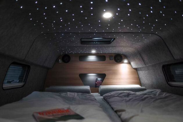 Alphavan je bio među prvim kompanijama za kamp-prikolice na svetu koje su uključile Starlink internet, a to prenosi i na svoj najnoviji kombi. Zatim koristi WC koji koristi „vrećice za zatvaranje“ bez vode, jedan od popularnih, rastućih trendova RV sezone 2025, kako bi eliminisao potrebu za posebnim skladištenjem i odlaganjem otpadnih voda. Zapečaćene vreće za toalet možete jednostavno baciti u smeće.