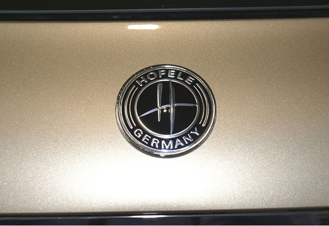Najnoviji model kompanije HOFELE nastavlja „Ultimativnu“ dizajnersku temu koja podrazumeva dvobojnu spoljašnost, ovoga puta u bojama Tiffany Gold i Obsidian Black, a tu su i prepoznatljive HOFELE „Turbine“ polirane felne od kovanog aluminijuma, veličine 23 inča, sa jedinstvenom završnom obradom u delikatnoj svetlo-zlatnoj boji.