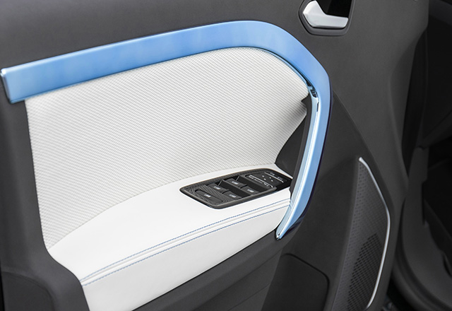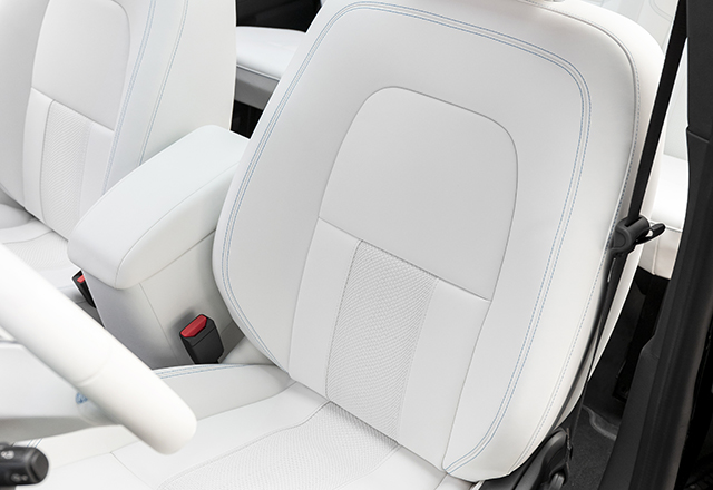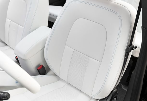 Sedišta su presvučena belom nappa kožom; pletene kožne aplikacije na središnjoj ploči sedišta sastoje se od reciklirane kože.
