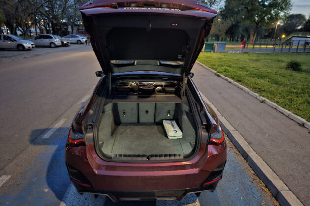 Peta vrata su zaslužna za lakši unos stvari u gepek. Da li zbog baterije, ili nečeg drugog, tek gepek je dosta plitak. Dužina i širina gepeka je za poštovanje, no plitak je. Kada oborite zadnja sedišta, dužina prtljažnika je 170 cm, a ako suvozačevo sedište pomerite do kraja, stižete do oko 200 cm ukupne dužine. A opet, ko kupuje BMW i4 da bi ga koristio za selidbu?