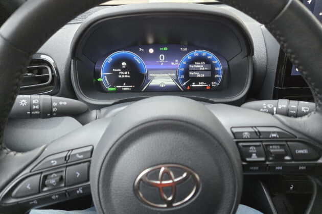 Lane Assist i adaptivni tempomat dolaze kao standard na svakom modelu u asortimanu, što je prilično neobično na ovom nivou. Ovi sistemi će vam pomoći da automatski pozicionirate vaš automobil unutar trake i zadržite određenu brzinu i udaljenost između vas i automobila ispred vas dok krstarite autoputem. Ume da znači i cenimo da će vozači primetiti taj lep dodatak. Interesantno je da Yaris u krivinama drži unutrašnju stranu trake. To nam se jako svidelo. Nekako vam podiže sigurnost i poverenje u automatiku Toyote i tera vas da još viđe koristite „autopilota.“ Druga strana medalje je što (makar naš primerak) vas svako malo sistem pita da držite volan, iako ga već držite. Očekuje od vas da i vi malo pomerite volan levo-desno, kako bi potvrdili svoju prisutnost i budnu pažnju nad situacijom na putu.