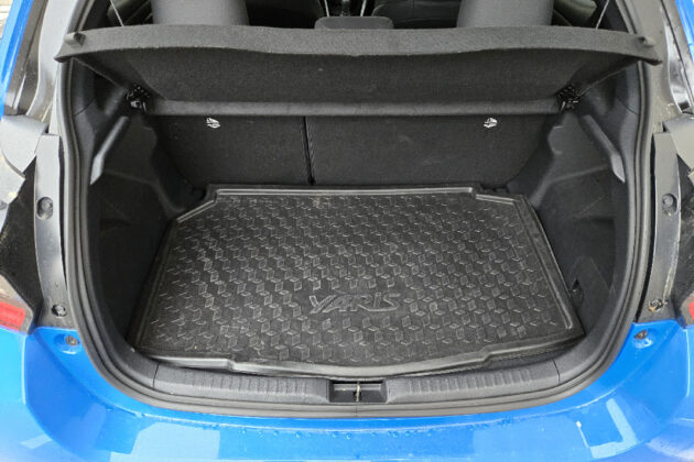 Na papiru, Yaris ima najmanji prtljažnik od bilo kojeg gradskog hečbeka, sa samo 286 litara. Yaris dolazi sa podom prtljažnika koji se može podešavati po visini, što znači da nema praga za istovar, a kada preklopite zadnja sedišta, ona leže u ravni sa podom prtljažnika. Tu su i dve zgodne kukice za kese kako bi se sprečilo da se sadržaj izvrne na pod.