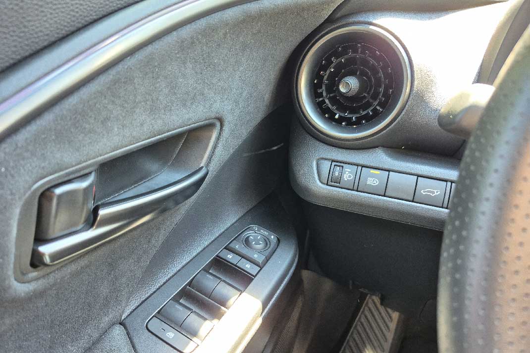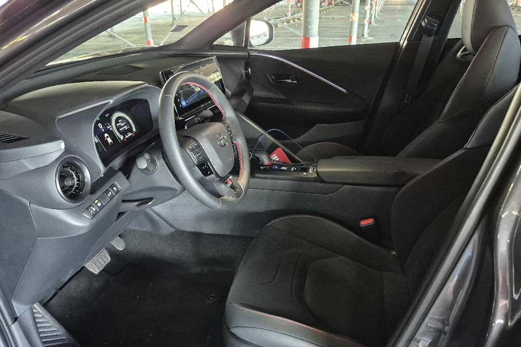 Toyota C-HR 2.0 HEV iznutra izgleda jednako odvažno kao spolja. Kokpit je blago orijentisan ka vozaču, što odmah stvara sportski utisak, dok mekani materijali na dodir i precizne završne obrade odaju osećaj premium segmenta. Prednja sedišta su profilisana i dobro podupiru telo (skoro kao ’kadice,’ što povećava sportski osećaj u vožnji), pa i posle višesatne vožnje nema umora. Podesiva potpora za leđa i širok raspon podešavanja volana olakšavaju pronalaženje idealne pozicije, bilo da ste visoki ili niži vozač. Čak je spuštanjem sedišta na minimalnu visinu moguće stvoriti osećaj kao da ste u limuzini.