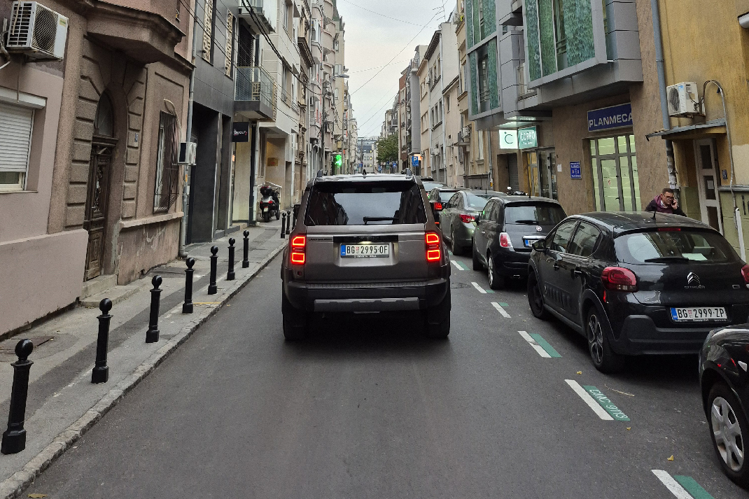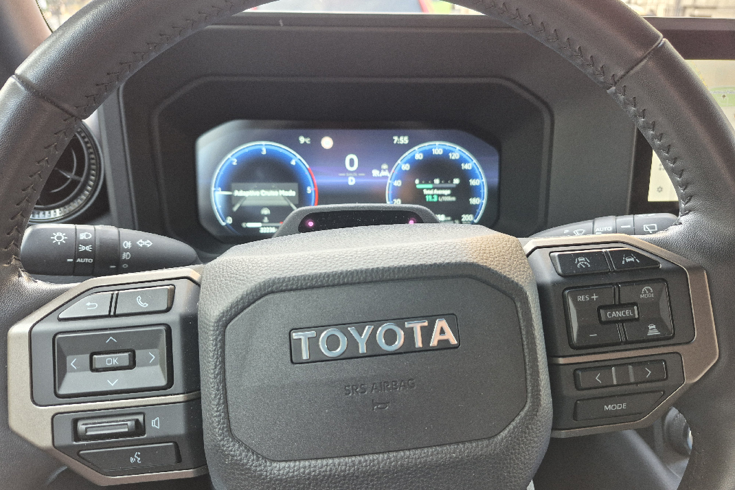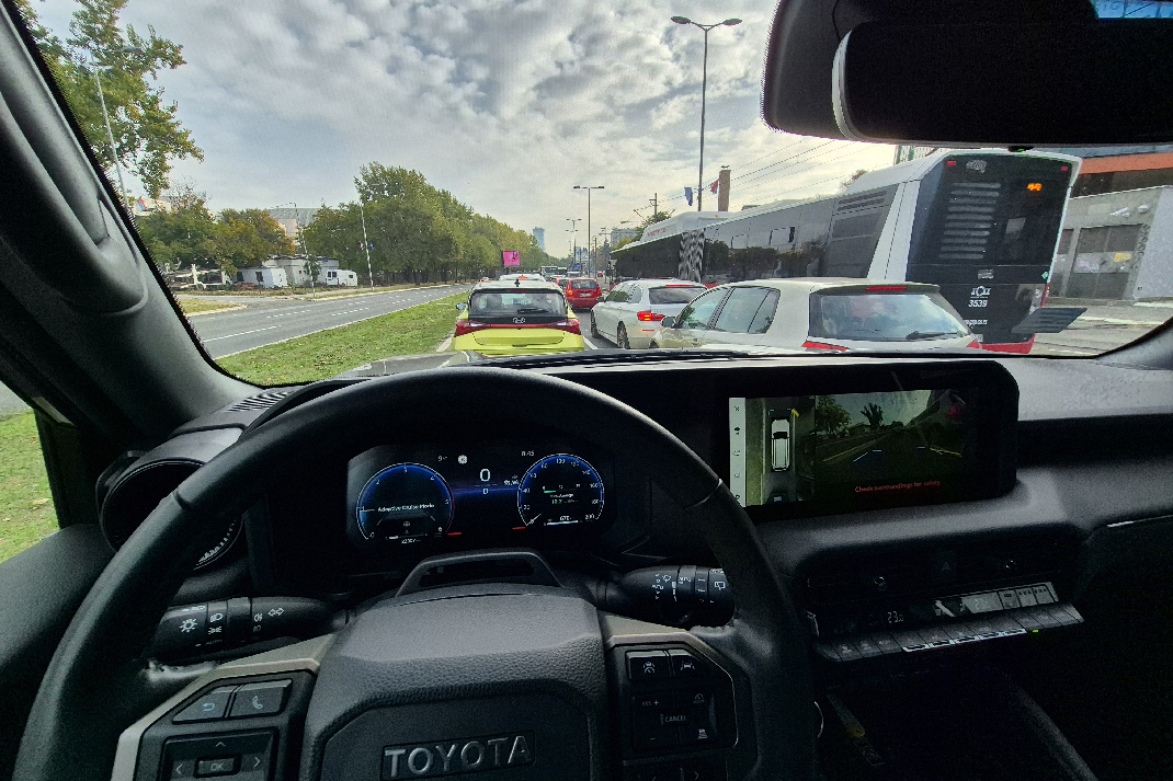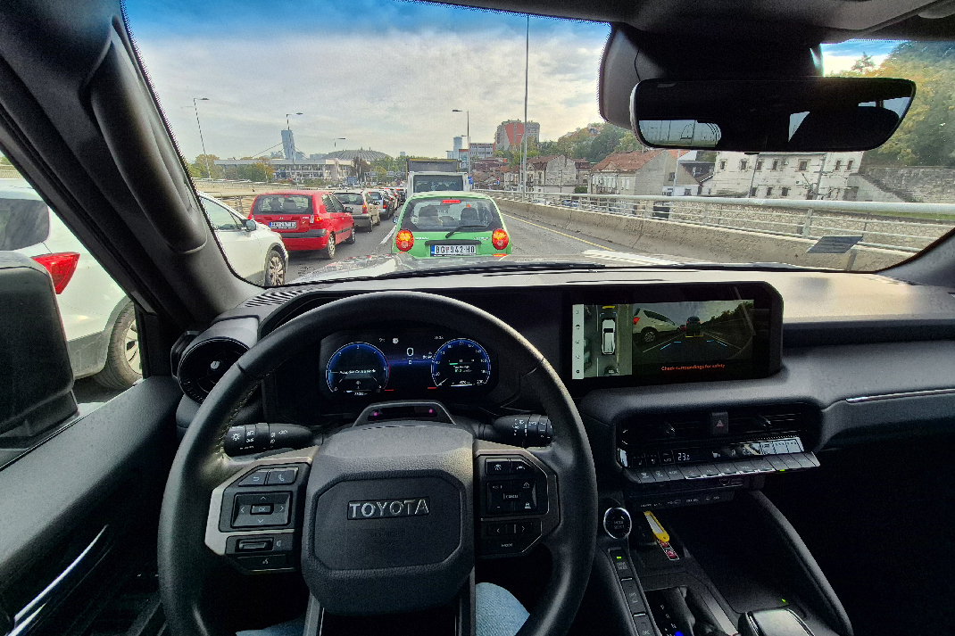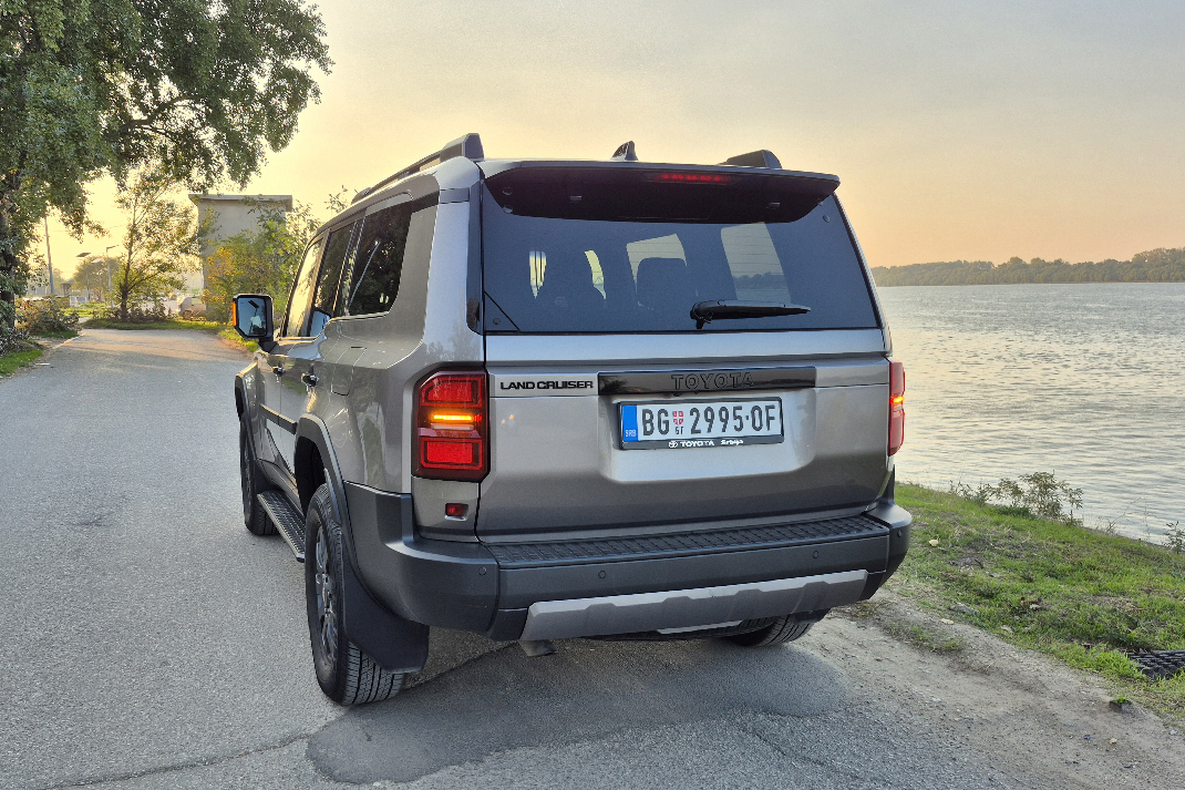 Po gradu, Land Cruiser se oseća preveliko. Širina od skoro dva metra i spora reakcija volana zahtevaju oprez u uskim ulicama i podzemnim garažama. Ali čim izađete na otvoren put, sve postaje mnogo prirodnije. Na magistrali plovi mirno, bez nervoze, a menjač neprestano održava motor u zoni obrtnog momenta. Na auto-putu, pri 130 km/h, motor se vrti ispod 2.000 obrtaja, a buka vetra je manja nego što bi se očekivalo od tako kockaste siluete. Aerodinamika jeste sekundarna, ali izolacija kabine je odlična. Toyota je ozbiljno poradila na akustici – vetar se čuje tek blago oko retrovizora, a zvuk točkova prigušen je kao u automobilima znatno višeg cenovnog ranga.