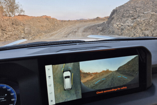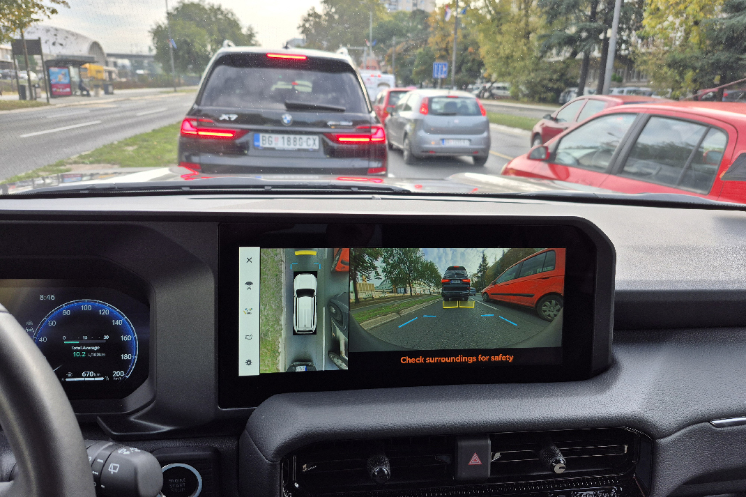 Terenska oprema uključuje i kameru koja pokazuje tlo ispod prednjih točkova – izuzetno korisno kada vozite po kamenitom terenu, jer možete videti gde su točkovi bez da izlazite iz kabine. Dodatno, ručica za reduktor ima mehanički osećaj, što daje poverenje da u pravom trenutku imate kontrolu nad svim što se dešava.