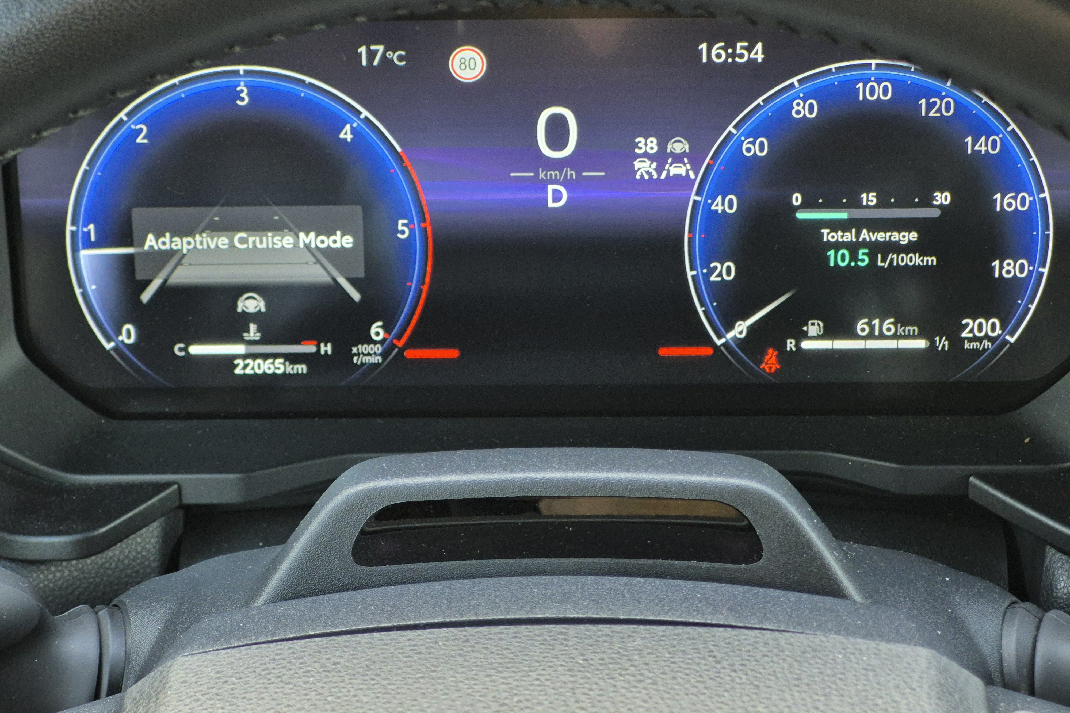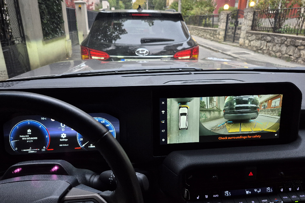 Veličina i oblik ne ulivaju poverenje u preglednost, ali svi delovi vozila se jasno vide. Po potrebi se uključuje kamera (360 stepeni) kako bi 100% bili sigurni da možete proći. Instrument tabla je jednostavna, ali izuzetno funkcionalna; ima velike komande i fizičke tastere, a ne beskonačne dodire po ekranu. Sve je pod rukom, čak i kada vozite po neravnom terenu. Mada, dublja podešavanja zahtevaju malo više „čačkanja“ po Meniju, no to se radi kada vozilo stoji, pa ovome nema bitne zamerke.