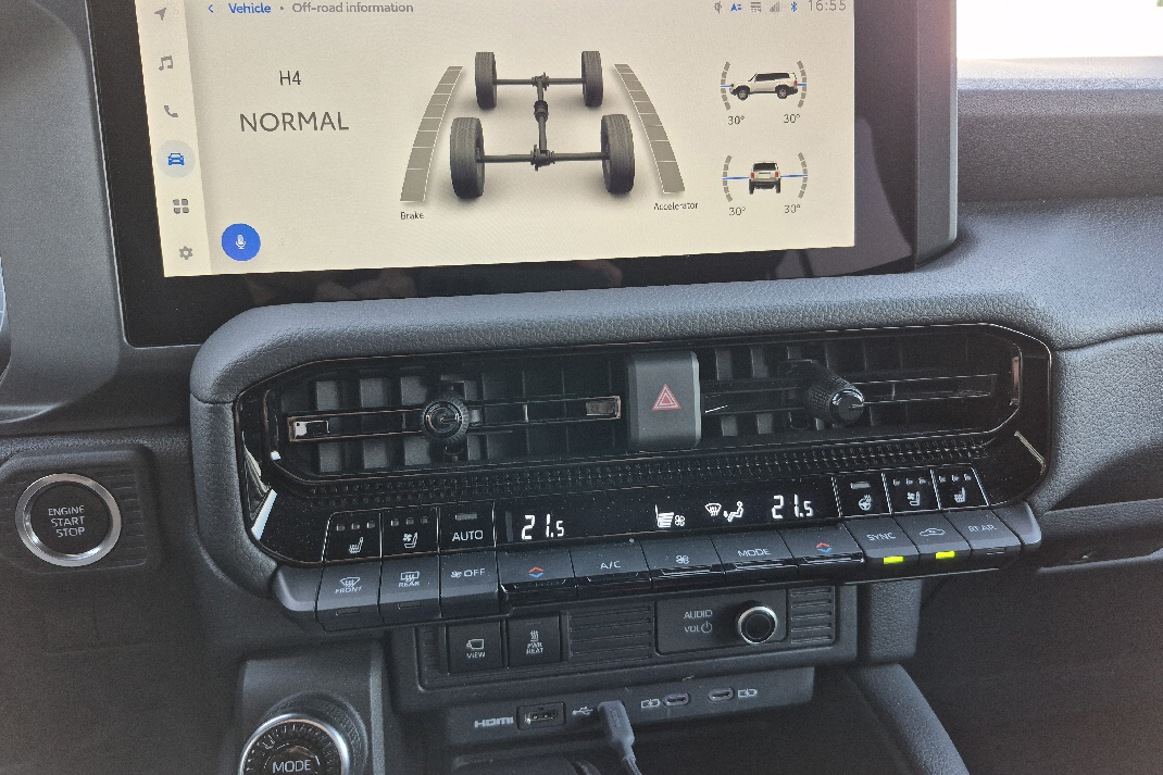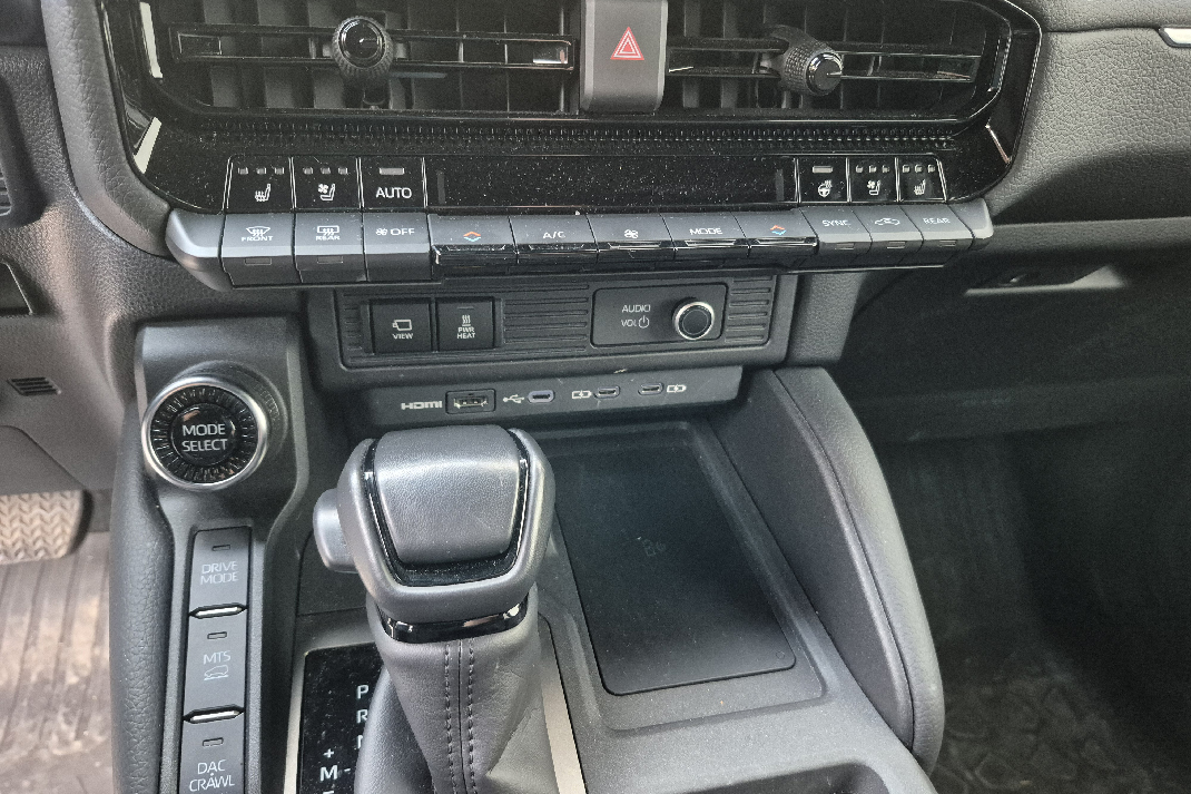 Zanimljivo je koliko Toyota vodi računa o praktičnim detaljima. U kabini se nalazi čak sedam USB-C priključaka, 220-voltnа šuko utičnica za napajanje laptopa ili mini frižidera, pa čak i HDMI ulaz. On omogućava da, recimo, priključite kameru ili medijski uređaj direktno na centralni ekran. Vrlo korisno ako ste fotograf, snimate teren ili jednostavno želite da pustite film tokom kampovanja.