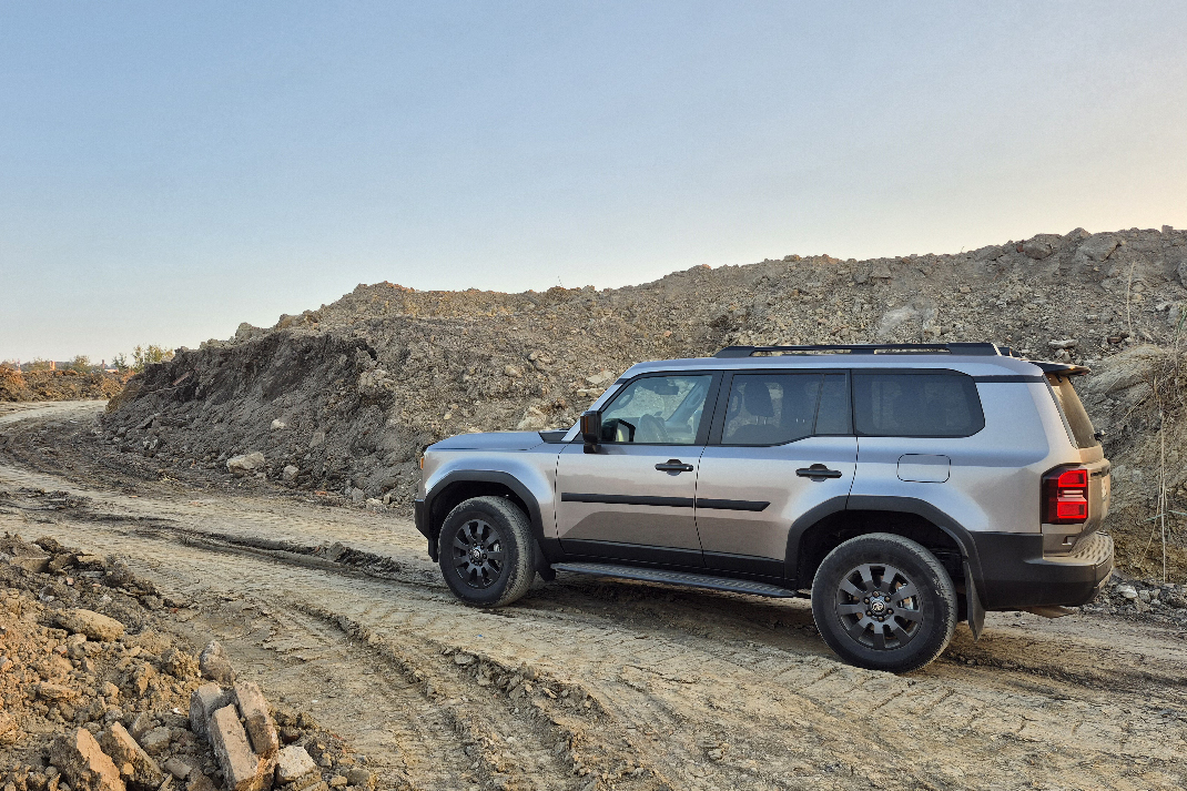 Na neasfaltiranim putevima, Land Cruiser je u svom elementu. Test vožnja obuhvatila je zemljani put posle kiše, deo sa dubokim blatom i nekoliko kilometara grubog makadama. Elektronika za pomoć pri terenskoj vožnji – Multi-Terrain Select – automatski prilagođava gas, prenos i kontrolu proklizavanja prema podlozi. Dok stojite napolju, deluje kao da vozilo polako „kopa“ i traži stabilnost, ali iznutra sve deluje mirno. Volan ne prenosi udarce, karoserija ne poskakuje previše, a oslanjanje upija i krupne rupe bez trzaja.