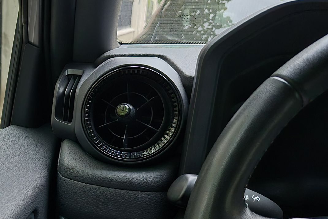 Ulazak u kabinu zahteva blagu gimnastiku, posebno ako ste niže građe. Pomoć se nudi u vidu ručki na A i B stubu, i mnogo je lakše ući (i izaći) ako se držite za ručke. Kada jednom sednete, pogled se otvara kao da ste u kontrolnoj kuli. Preglednost je odlična: visoka pozicija sedenja, uspravne staklene površine i široka retrovizorska ogledala daju potpunu kontrolu nad okruženjem. Sve oko vas je kao na dlanu.