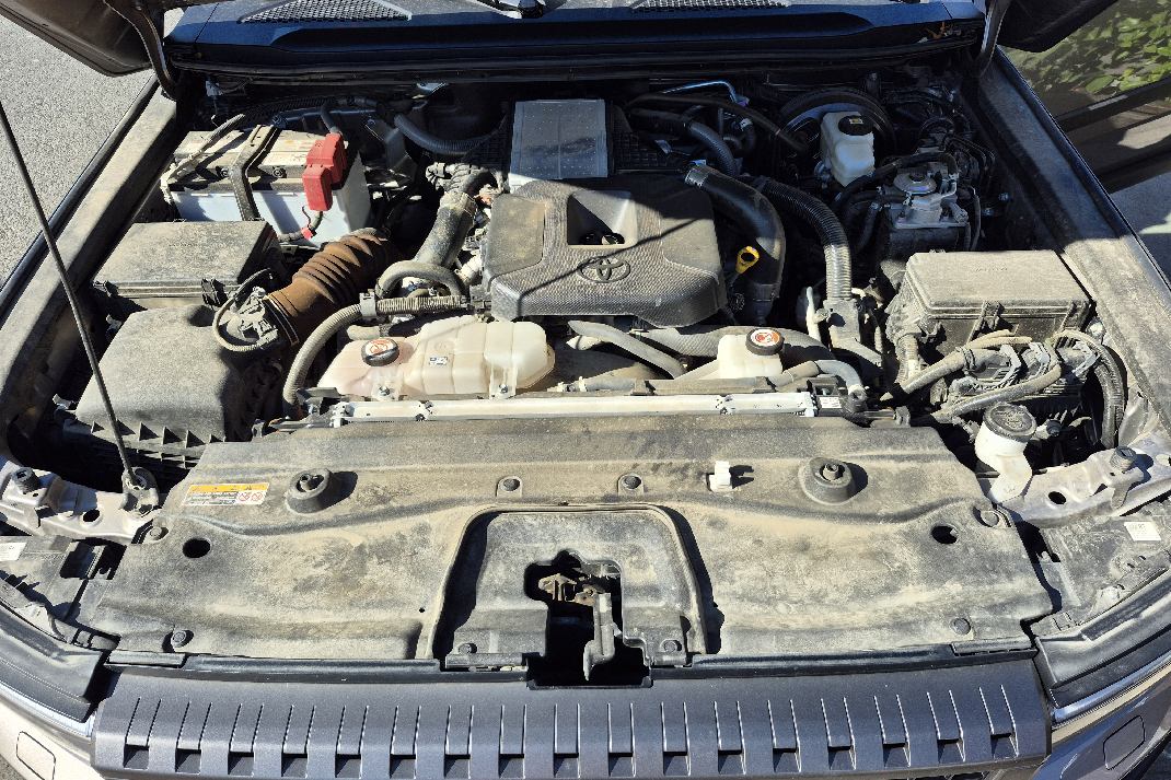 Testirani model bio je opremljen 2.8-litarskim dizel motorom koji Toyota koristi u mnogim svojim modelima za tržište Evrope. Motor ima 204 konjske snage i 500 njutn-metara obrtnog momenta, uparen sa novim osmostepenim automatskim menjačem. Već pri prvom kontaktu, jasno je da je ovo motor koji ne juri, već vuče. Na niskim obrtajima vuče gotovo kao turbina, i bez napora podiže više od dve i po tone metala. Pri laganoj gradskoj vožnji motor radi tiho i civilizovano, uz blagu vibraciju na leru. Kada ga poterte uzbrdo ili pritisnete papučicu gasa pri preticanju, čuje se dubok, mehanički zvuk koji podseća na stare dizel terence, ali bez grubosti.