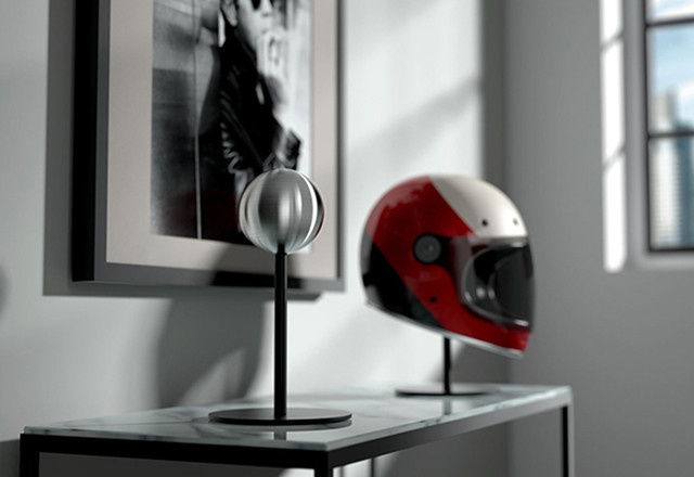 Postolje za kacigu (Helmet Stand) koristi istu sferu od brušenog nerđajućeg čelika da pridržava vašu kacigu, a sfera stoji na postolju od čelika koji je sečen laserom i koje ima dno presvučeno gumom koja sprečava klizanje.