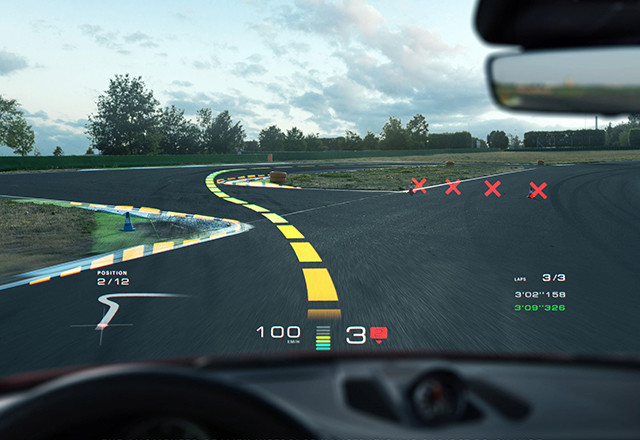 Ovaj HUD ima primenu i u poboljšanju vozačkih sposobnosti. Na primer, WayRay tehnologija proširene stvarnosti može na trkačkoj stazi da uživo projektuje najbolju putanju za vožnju, i da nudi predloge kada treba kočiti ili skretati.